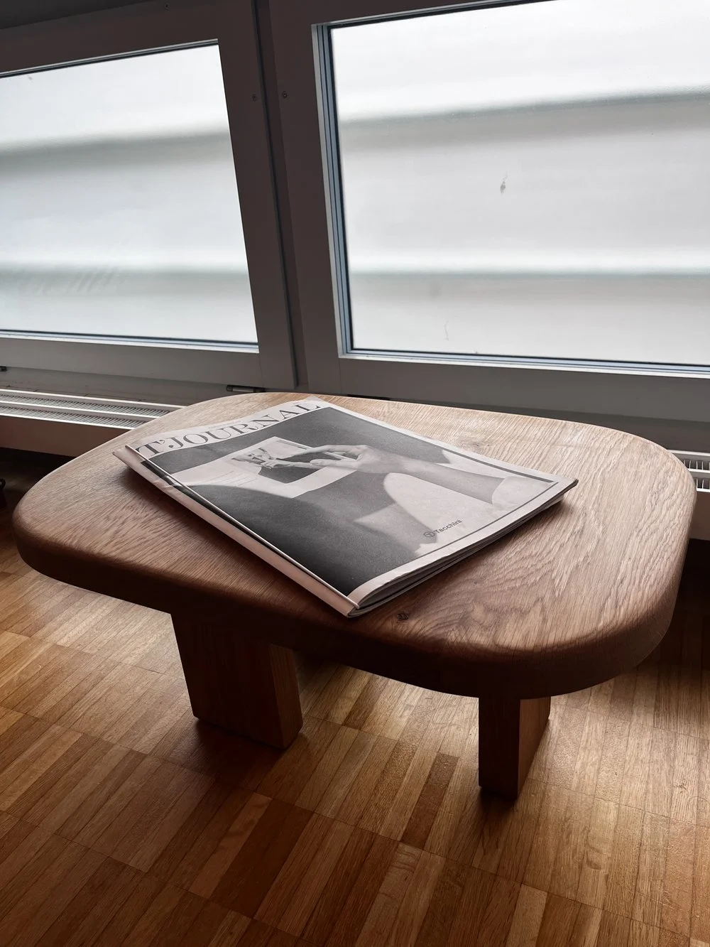 ÜL is a coffee table that harmoniously combines soft curves and straight lines. The table's large radius and curved edges provide a warm and inviting feel, while its three straight legs symbolize rigidity, trust, and order. These contrasting elements create a unique balance of comfort and tension. The ÜL table's versatility allows it to seamlessly blend into any interior setting.