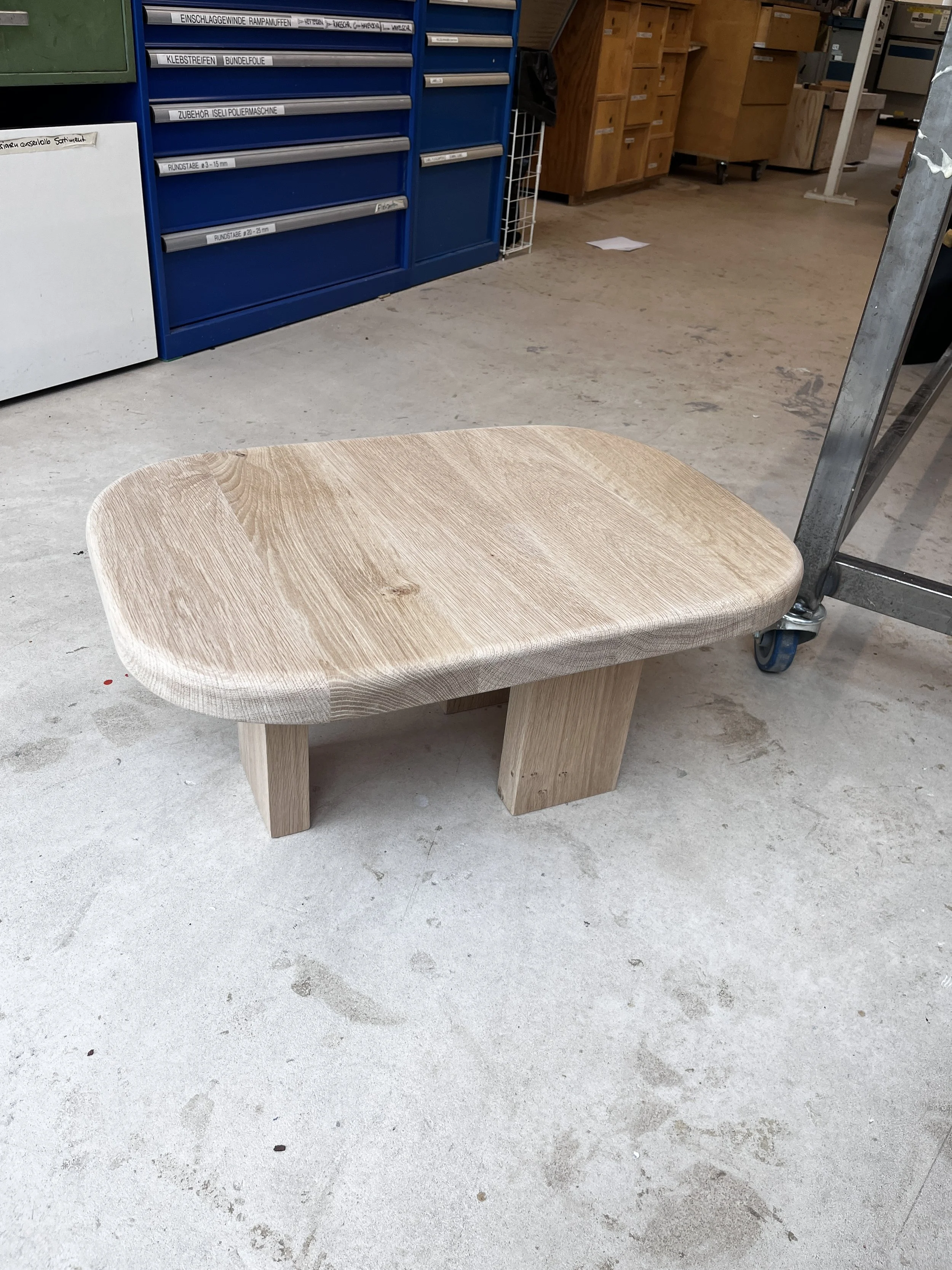 The table is crafted from solid oak wood, wood connecter, using a minimal amount of bio-grade wood glue and natural oil.